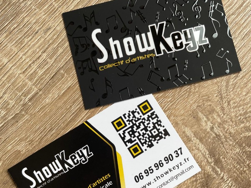 Carte de visite couleurs avec pelliculage mat et une couche de vernis brillant sur certaines zones....