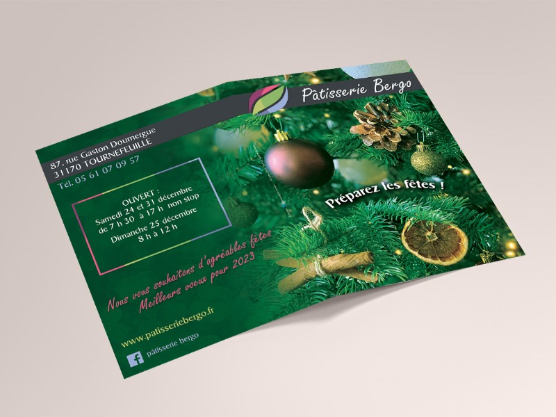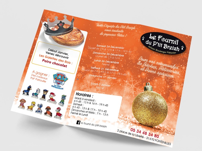 Dépliant deux volets, format A5 fermé, A4 ouvert, avec impression couleurs recto verso....